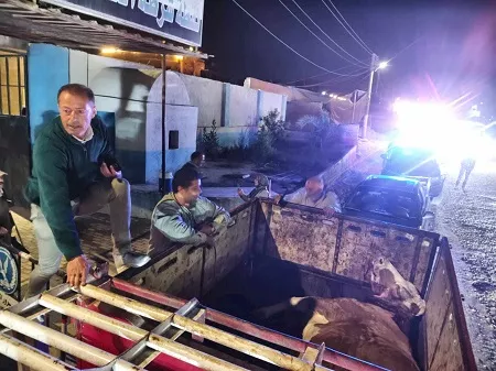 تمكنت حملة تفتيشية بمدينة السادات بمحافظة المنوفية، من ضبط سيارة محملة ببقرة مذبوحة خارج المجازر الحكومية، في إطار تشديد الرقابة على الأسواق لحماية صحة المواطنين.