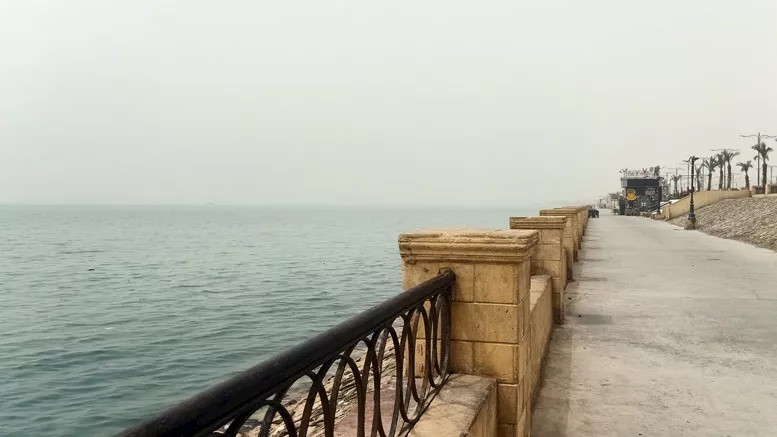 أدت كثافة الأتربة إلى اختفاء معالم جغرافية مميزة، في مشهد عكس تأثير العاصفة الترابية على المدينة، رغم استقرار نسبي في حالة البحر.