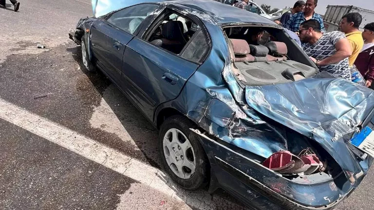 السرعة الزائدة تتسبب في تصادم 4 سيارات بطريق بنها – شبرا الحر