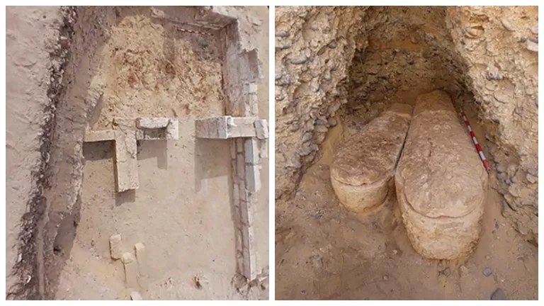 أعمال الحفائر كشفت أيضاً عن خندق يضم ثلاث غرف من الحجر الجيري، كشفت عن جانب "غامض" من الممارسات الجنائزية؛ حيث عُثر على جِرار تضم بقايا بشرية محروقة، وجوارها عظام لأطفال رضع ورؤوس حيوانات من "فصيلة السنوريات" ملفوفة بعناية في قطع من النسيج، مما يشير إلى طقوس مركبة كانت تمارسها العائلات في تلك الفترة.