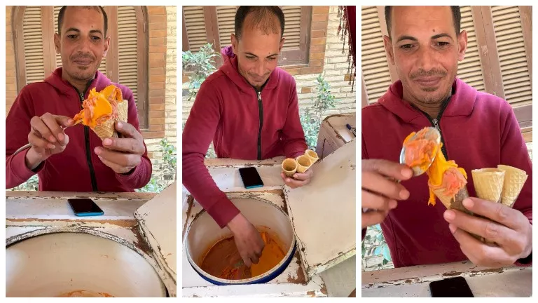 حكاية هشام مع "الآيس كريم" بدأت منذ 25 عامًا؛ حيث كانت البداية من عائلة زوجته التي ورث عنها أسرار المهنة. ورغم عدم حصوله على مؤهل دراسي، إلا أنه اتخذ من الأمانة "شهادة" ومن الصبر "طريقًا"، ليتحول بمرور السنوات إلى أقدم بائع في المنطقة، معتمدًا على دراجته النارية التي صممها خصيصًا لتكون رفيقة رحلته في قرى المنوفية.