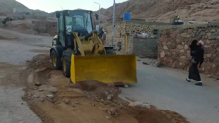 حملة موسعة لتأهيل طرق أودية سانت كاترين بعد جفاف مياه السيول (صور)
