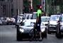 أقدم سائق دراجة هوائية على إغلاق الطريق على السيارة الإيطالية الفائقة ''لامبورجيني أفينتادور'' بتحد وعناد.