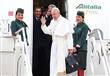 وصل البابا فرانسيس الأول إلى مطار القاهرة، فيما ظهر حاملا حقيبة سوداء في يده اليسرى، وأثناء إلقاءه السلام على المضيفات قبل النزول إلى أرض مصر.