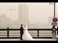 بينما تضرب عاصفة ترابية أرجاء القاهرة، وقف عروسان للاحتفال برفقة عائلتهما لالتقاط صورًا تذكارية تخليدًا لذكرى زفافهما على كويري قصر النيل.