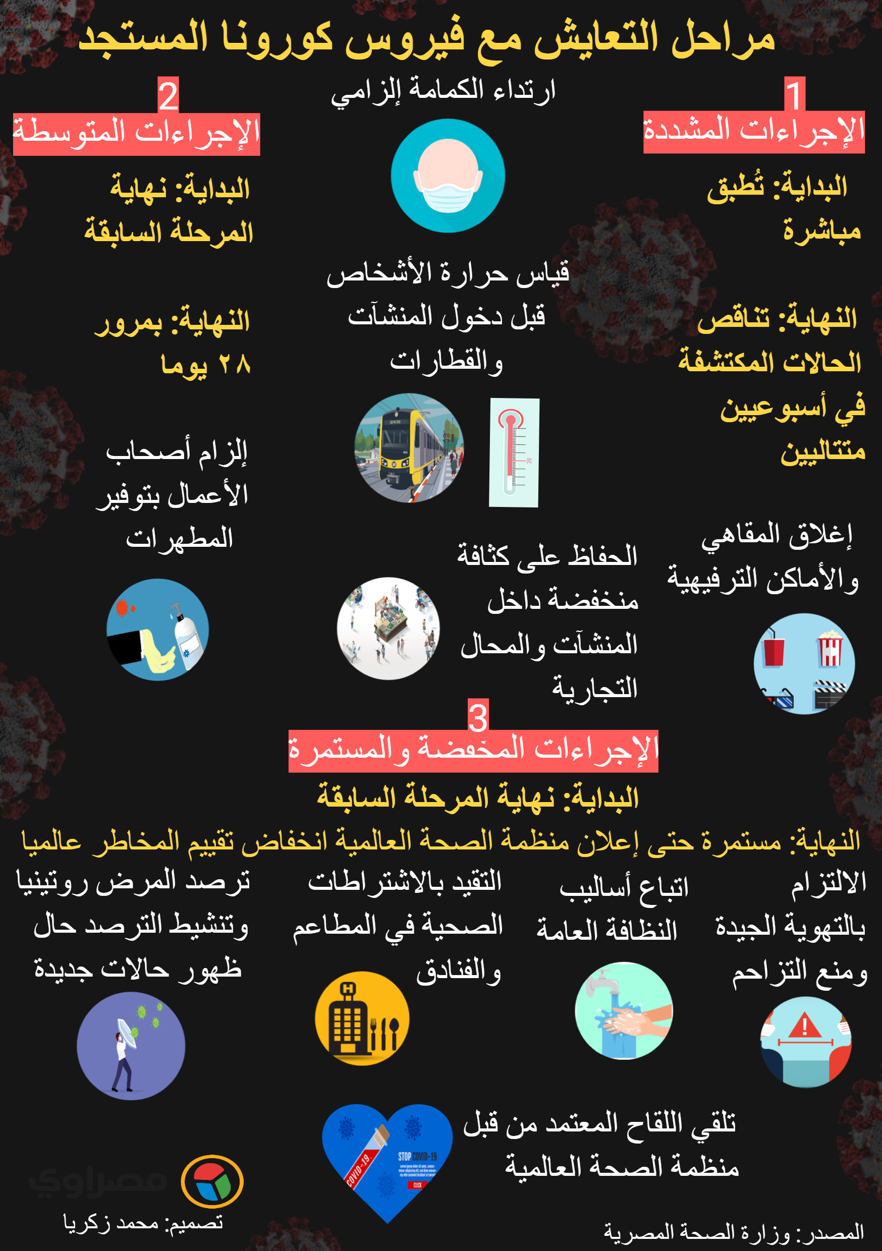 اليوم الثلاثاء، 23 يونيو 2020، أعلن الدكتور مصطفى مدبولي، رئيس مجلس الوزراء، عن مجموعة قرارات جديدة، بشأن خطة التعايش مع فيروس كورونا المستجد، على رأسها فك حظر حركة تجوال المواطنين والحافلات، ومن بينها إعادة فتح المقاهي، مع السماح بتواجد 25% فقط من طاقتها، ليتم الإغلاق في العاشرة مساء، على أن تُطبق القرارات اعتبارا من السبت المقبل 27 يونيو.