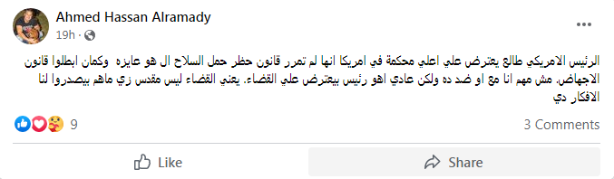وتداول رواد "السوشيال ميديا" من مصر والدول العربية آرائهم حول هذا القانون، البعض رأى فيه عودة لحق طبيعي بعدم إزهاق روح، وآخرون فسروا ظروف القرار، والبعض الآخر هاجم المهتمين بالتعليق على القرار الأمريكي.