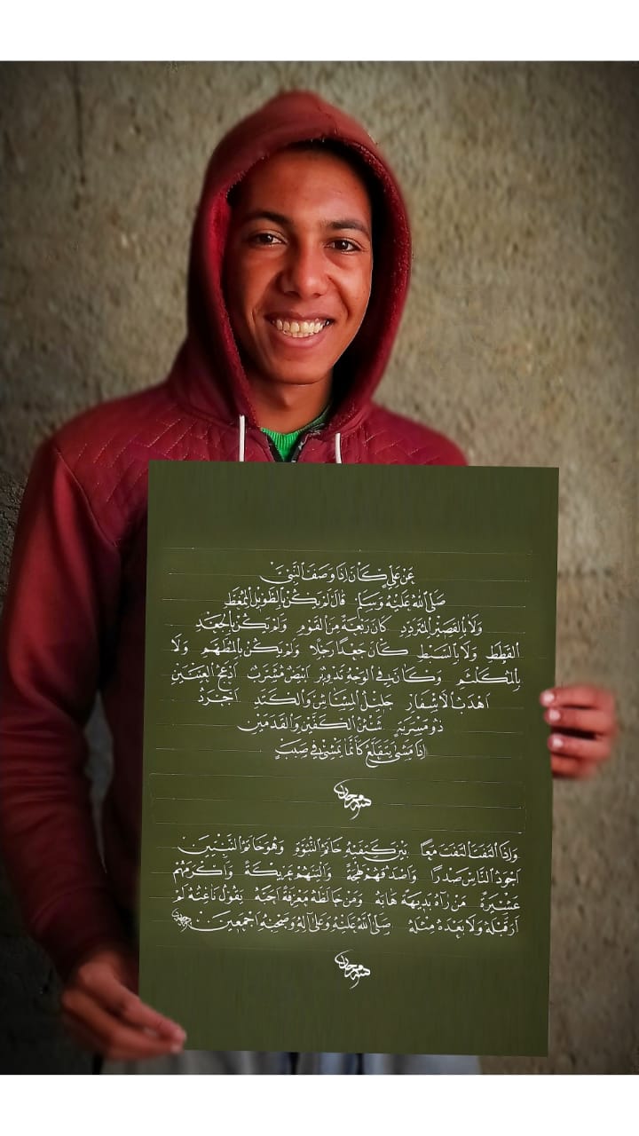 لا يكف الشاب عبدالكريم محمد مرجان، الملقب بأصغر خطاط للقرآن الكريم في مصر، عن تحقيق مزيد من الإنجازات في مسيرته بعالم الخط، حيث نجح مؤخرا في الحصول على المركز الأول على مستوى الجمهورية في دبلوم مدارس الخط العربي التابعة لوزارة التربية والتعليم والتعليم الفني، كما يؤكد في حواره مع مصراوي.
