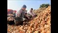 يمر وقت قليل فتمتلئ "الجرادل والشكائر"، ويقوم الأطفال بتفريغها في بقعة تبعد عنهم بضعة أمتار، فيتكدس البصل فوق بعضه وكأنه تل أحمر ومن خلفهم شابين جلسا يفرزان المحصول قبل تعبئته في "الشكائر": "البصلة المتوسطة دي هي اللي ممكن تتصدر عشان بتستحمل.. إنما الكبيرة دي بياخدها محلات الكشري والمطاعم".
