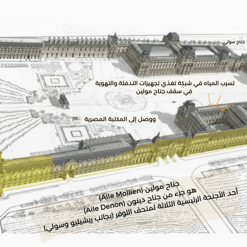 في نفس الوقت، ستبدأ إدارة المتحف في استبدال الشبكة المائية "المتهالكة" بالكامل اعتبارا من سبتمبر 2026 في إطار أعمال من المفترض أن تمتدّ لأشهر عدّة. ولتمويل أعمال الترميم، تنوي إدارة اللوفر رفع سعر تذاكر الدخول بنسبة 45% للزائرين من خارج أوروبا بداية من العام الجديد.