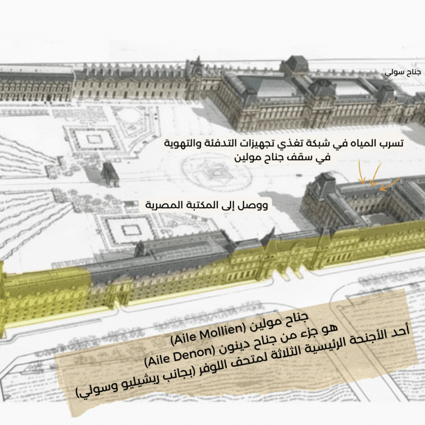 بنهاية الشهر الماضي، تسربت المياه داخل المتحف الأشهر في العالم "اللوفر"، لتلحق أضرارا ألحق أضرارا بمئات الأعمال في مكتبة الآثار المصرية.