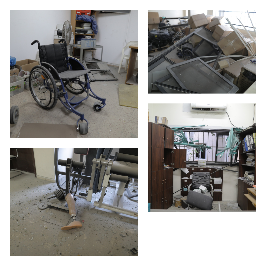 فوقعت انهيارات كبيرة في الأسقف والجدران نتيجة الشظايا ودُمرت ألواح الطاقة الشمسية فوق المبنى وبراميل المياه وتلفت أدوات التصنيع والأجهزة، بحسب حديث حسني مهنا (رئيس قسم الإعلام بالمركز) لمصراوي، الذي أشار إلى أن "المركز سلم منذ بداية الحرب لنحو 200 مستفيد أطرافا صناعية وأكثر من 1500 أجهزة مساندة إضافة إلى إجراء صيانة لأطراف وأدوات لمئات المستفيدين".