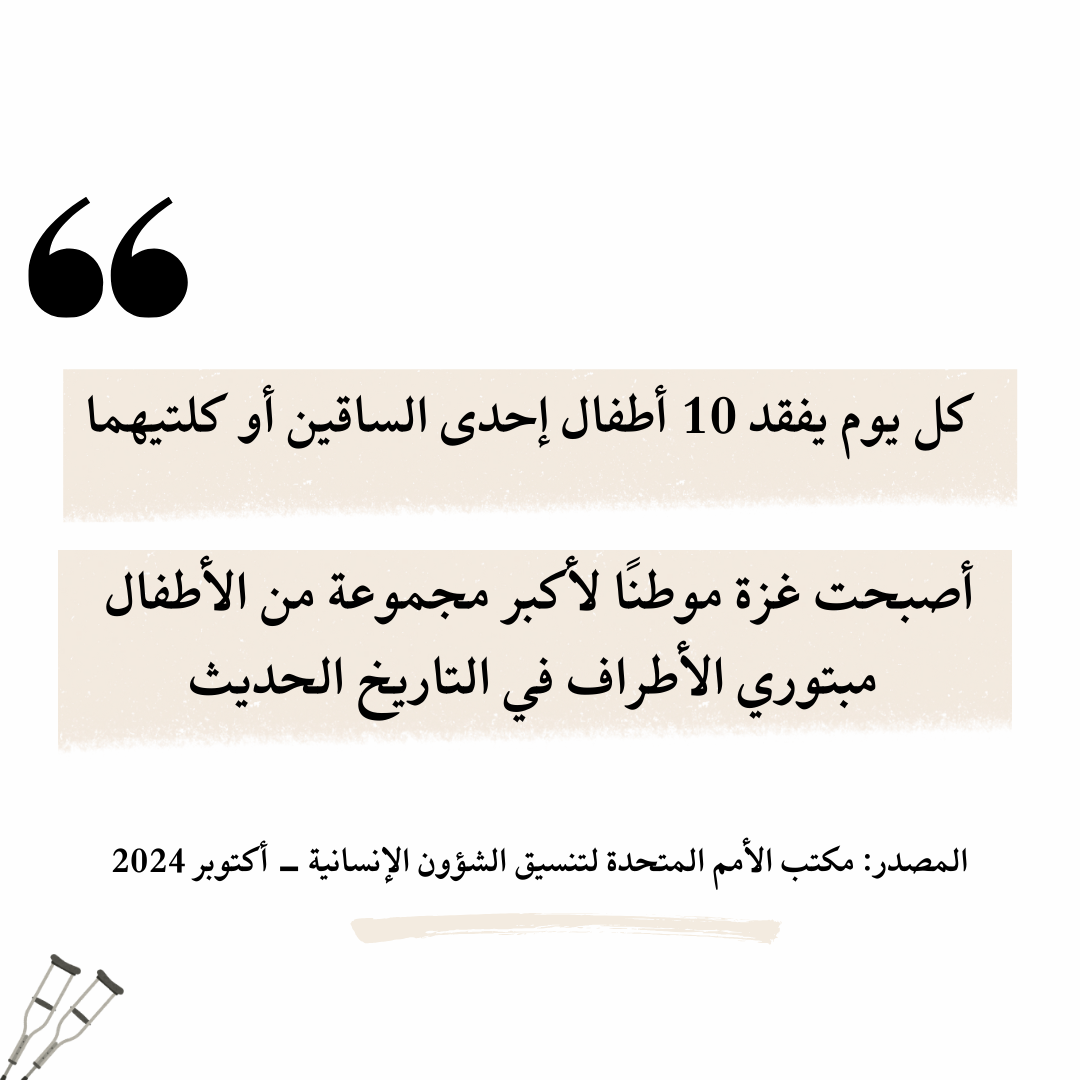 لكن بعد الحرب الأخيرة، تزايدت أعداد حالات البتر وفقدان الأطراف على نحو غير مسبوق. فيحكي "أحمد" إنه "عانى حتى وصل إلى المستشفى عند وقوع القصف، وحين وصل عجز الأطباء عن إجراء عملية جراحية له في الوقت المناسب لضعف الإمكانيات وقلة المستلزمات، فلجؤوا إلى بتر ساقه". وهو ضمن نحو 5 آلاف حالة بتر جرت في القطاع، بحسب تصريحات زاهر الوحيدي (مدير وحدة المعلومات في وزارة الصحة الفلسطينية)، الشهر الماضي، موضّحًا أن 18% منهم أطفال.