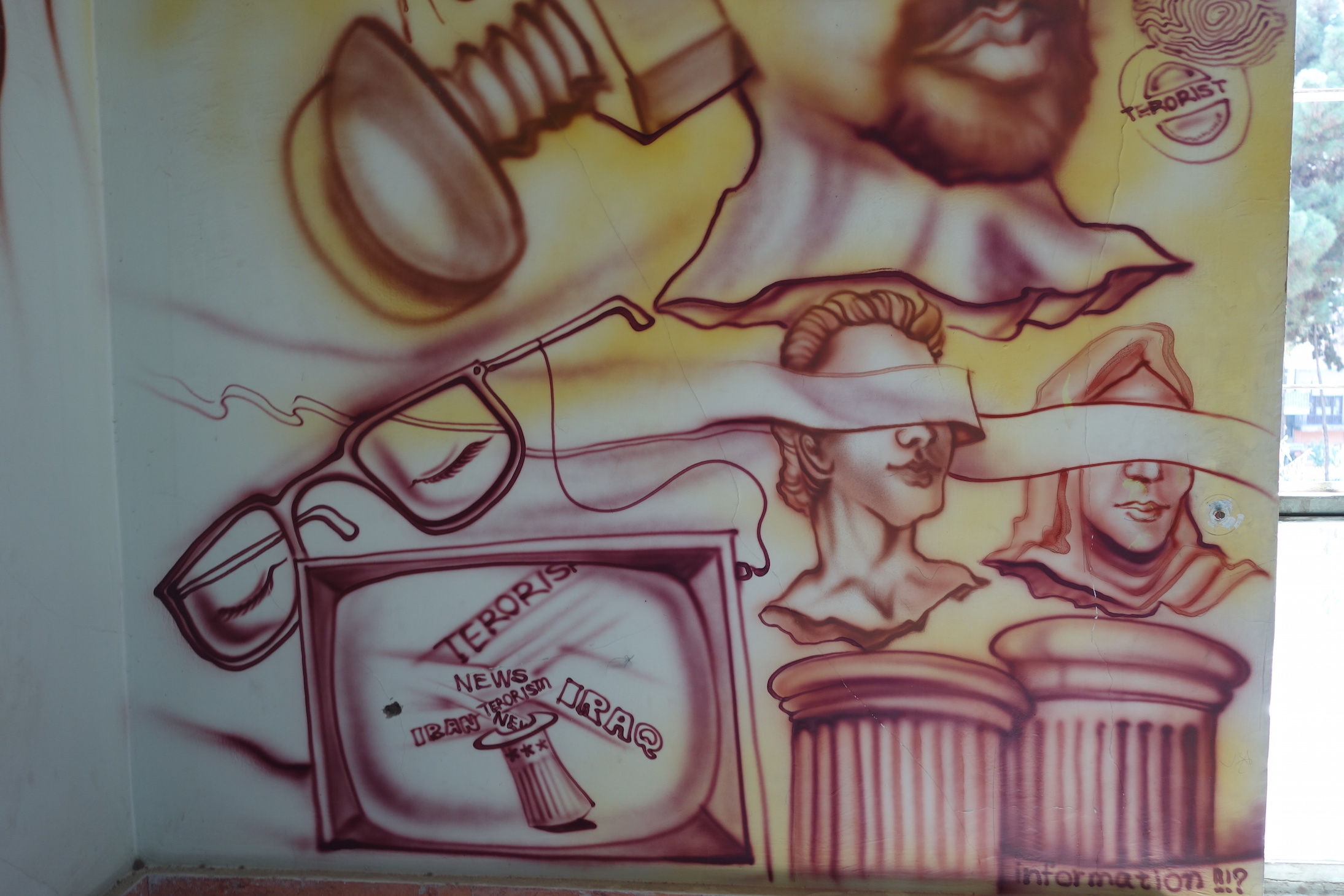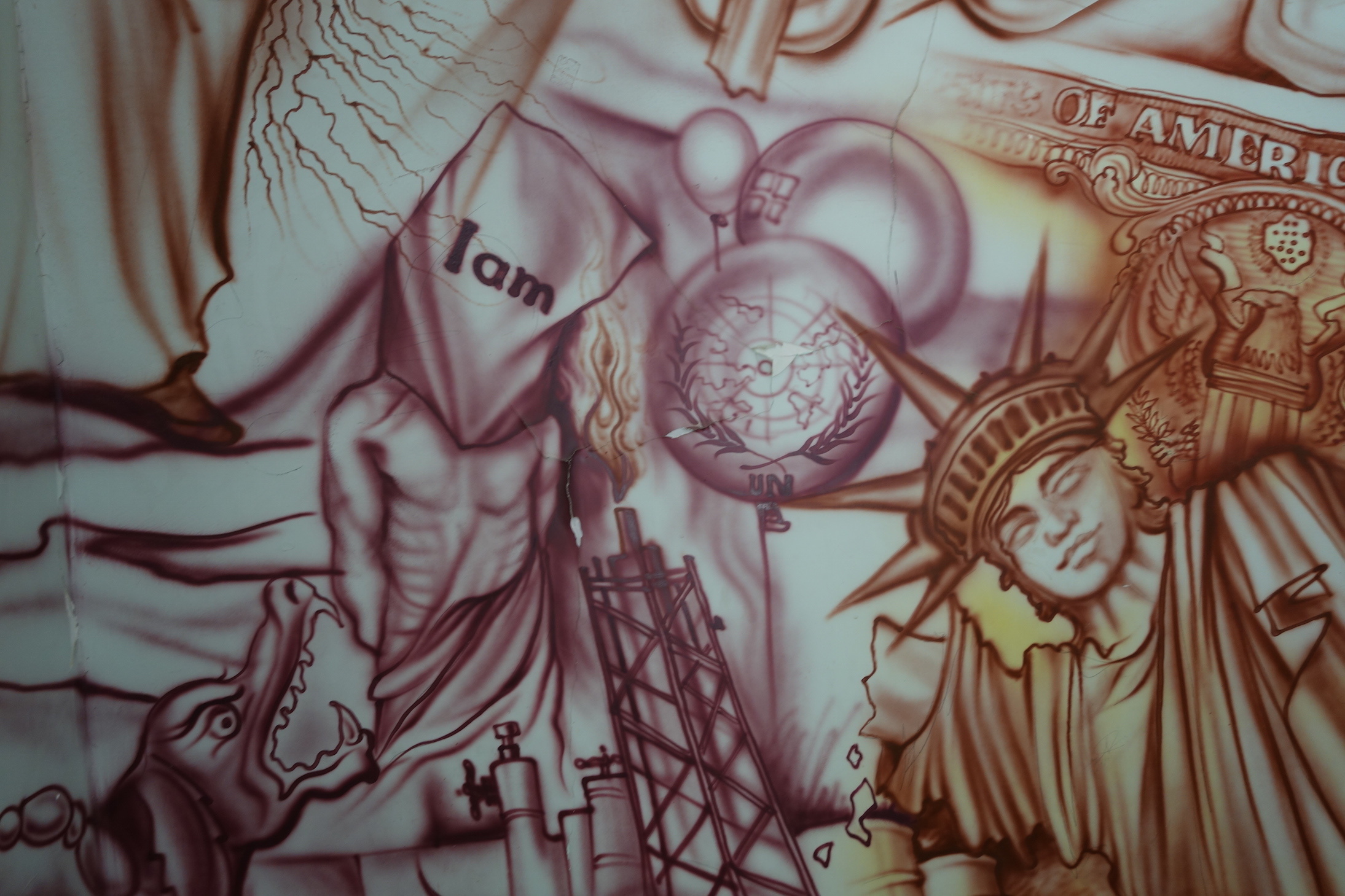 كانت بيكي إنرايت، وهي كاتبة بريطانية متخصصة في سرد القصص حول المغامرات والرحلات، واحدة من هؤلاء السياح؛ حيث زارت المتحف في وقت يتزامن مع ذروة المظاهرات المعادية لأمريكا عام 2013. صادفتها جدارية كُتب عليها "الموت لأمريكا" تستقبل كل من يدخل ويخرج من محطة المترو. وقالت: "رأيت هناك ما لم أكن أتوقعه، كل شيء كان يصور المشاعر المعادية للولايات المتحدة والتي نسمع عنها كثيراً في وسائل الإعلام الغربية، وهي موجودة بالفعل، لكن صار هناك جيل منفتح أكثر من الماضي". وتصف الأعمال الفنية المنتشرة على الجداريات بأنها "في جوهرها عمل فني حكومي، وليس عملاً فنياً عاماً من صنع الشعب".