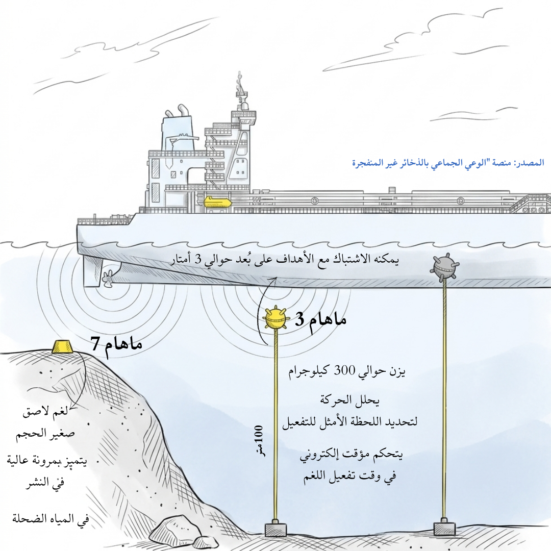 ومن المرجح أن يكون النوعان المستخدمان في الألغام هما: "ماهام 3" و"ماهام 7" المصنعة إيرانيًا، وفقا لخبراء. والمميز في هذه الألغام أنها حديثة، لا تحتاج للتلامس مع جسم السفينة، إنما تستخدم أجهزة استشعار مغناطيسية وصوتية للكشف عن السفن القريبة دون الحاجة لاتصال مباشر.