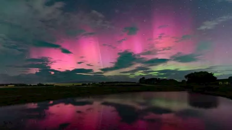 ورصدت صائدة الشفق جولي وين في نورثمبرلاند بالمملكة المتحدة الأضواء في برك ويتلدين وقالت بحلول الساعة 12:30 صباحا بتوقيت بريطانيا الصيفي حصلنا على رؤية بصرية رائعة واستمرت الكاميرا في تصوير اللون الوردي الزاهي حتى الساعة الرابعة صباحا.