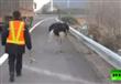 ذكر نعام يسابق الشاحنات ويُعطّل الطريق السريع