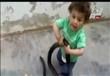 أب يعلم ابنته الامساك بافعى وكأنها لعبة