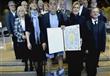 في موقف محرج أمام رئيسة الدولة يسقط سروال رئيس لجنة حقوقية خلال تسلمه شهادة تقدير من الرئيسة الكرواتية كوليندا غرابار كيتاروفيتش.