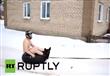 شباب يؤدون مهارات خاصة بدون ملابس على الثلج