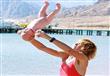 مدربة يوجا تؤدى حركات اليوجا لأطفال لم يتجاوزوا الشهر
