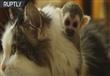 بالفيديو - قطة تتبنى قرداً تخلى عنه والداه
