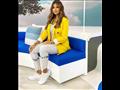 وارتدت سارة شيميز باللون الابيض ومزينا بنقوشا بالأحمر والأسود وبنطلون جينز فاتح، مع تسريحة ديل حصان وساعة وإسورة ومكياج ناعم.