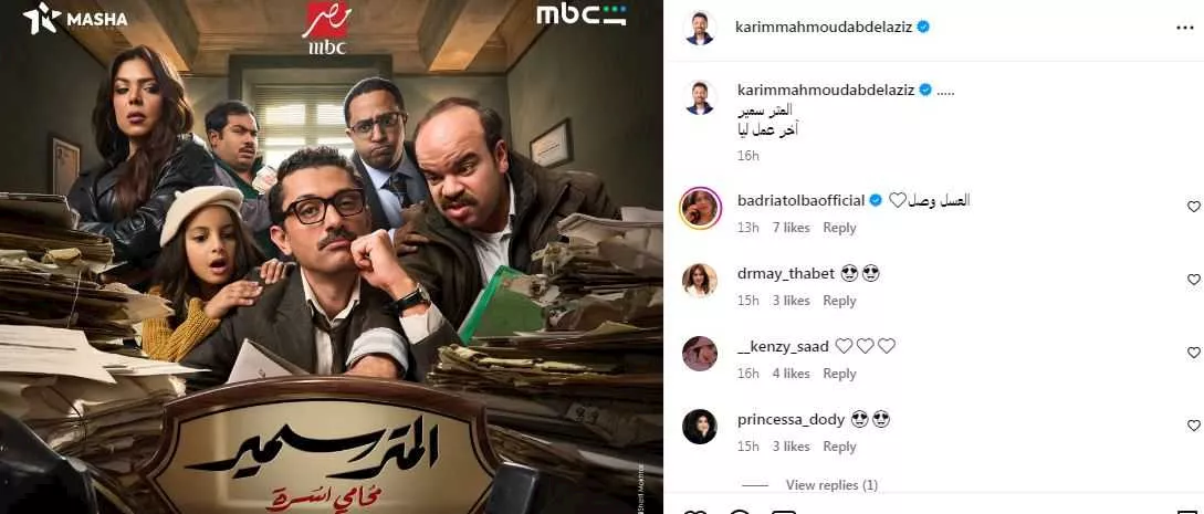 ونشر كريم، بوستر المسلسل، عبر حسابه على إنستجرام، وعلق: "المتر سمير.. آخر عمل ليا".