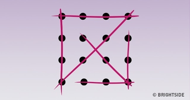 حاول الآن إيصال هذه النقاط الستة عشر باستخدم 6 خطوط فقط.