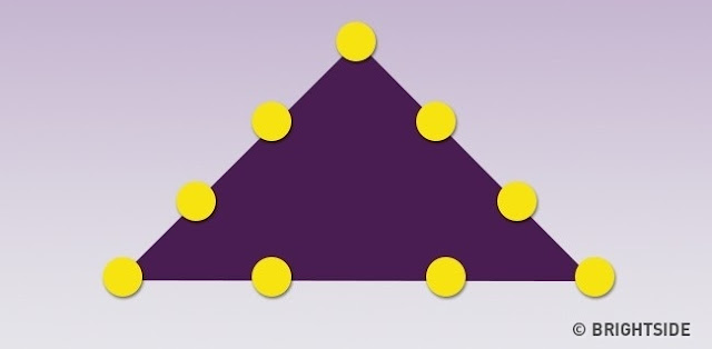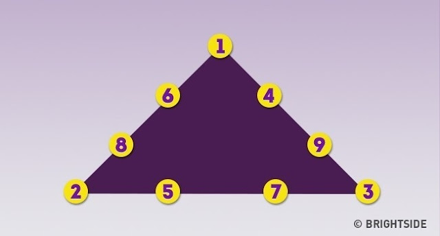 ضع أرقام من 1 إلى 9 بحيث يكون مجموع كل جانب من جوانب المثلت يساوي 17.