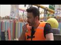 قاوم حمادة هلال محاولات رامز جلال لإسقاطه من الكبسولة محاولا التشبث بالمقاعد، إلى أن استسلم وسقط في حمام السباحة.