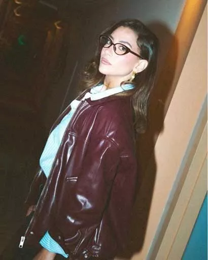 اعتمدت "لوك" يركز على تباين الألوان والقطع العملية، واختارت جاكيت قطعة بارزة من الجلد الصناعي باللون العنابي ، وتتميز بتصميم الـ "Oversized" أو القياس الكبير مع سحاب معدني أمامي وياقة عريضة.