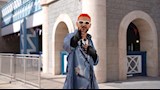 ونسق مع إطلالته حذاء باللون الأسود ونظارة شمسية باللون الأبيض.