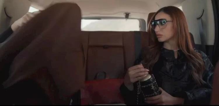 ظهرت الفنانة دينا الشربيني في أحد مشاهد مسلسلها الرمضاني "اتنين غيرنا" وهي تحمل في يدها زجاجة مياه أنيقة.