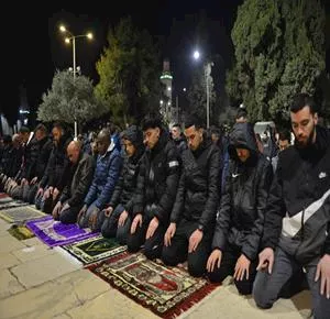 أدّى آلاف المصلين، مساء الثلاثاء، صلاتي العشاء والتراويح في رحاب المسجد الأقصى، إيذانا ببداية أولى ليالي شهر رمضان المبارك لهذا العام.