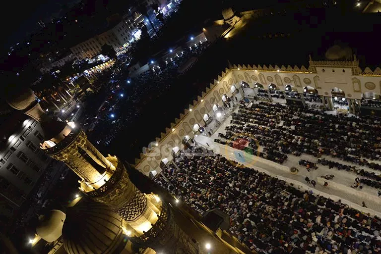 آلاف المصلين يؤدون صلاة التراويح والتهجد في ليلة 27 رمضان بالجامع الأزهر- (صور)