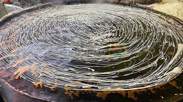 أوضح "عم عادل" أن صناعة الكنافة البلدي تبدأ بتعبئة «الكوز» بالعجين، ثم رسمه في خطوط متداخلة فوق تنور دائري ثابت، سطحه مصنوع من النحاس، ويعمل حاليًا بالغاز، بينما كان في الماضي يُشعل بالسولار إذ تمنح تلك الطريقة اليدوية الكنافة قوامها المميز ونكهتها الخاصة.