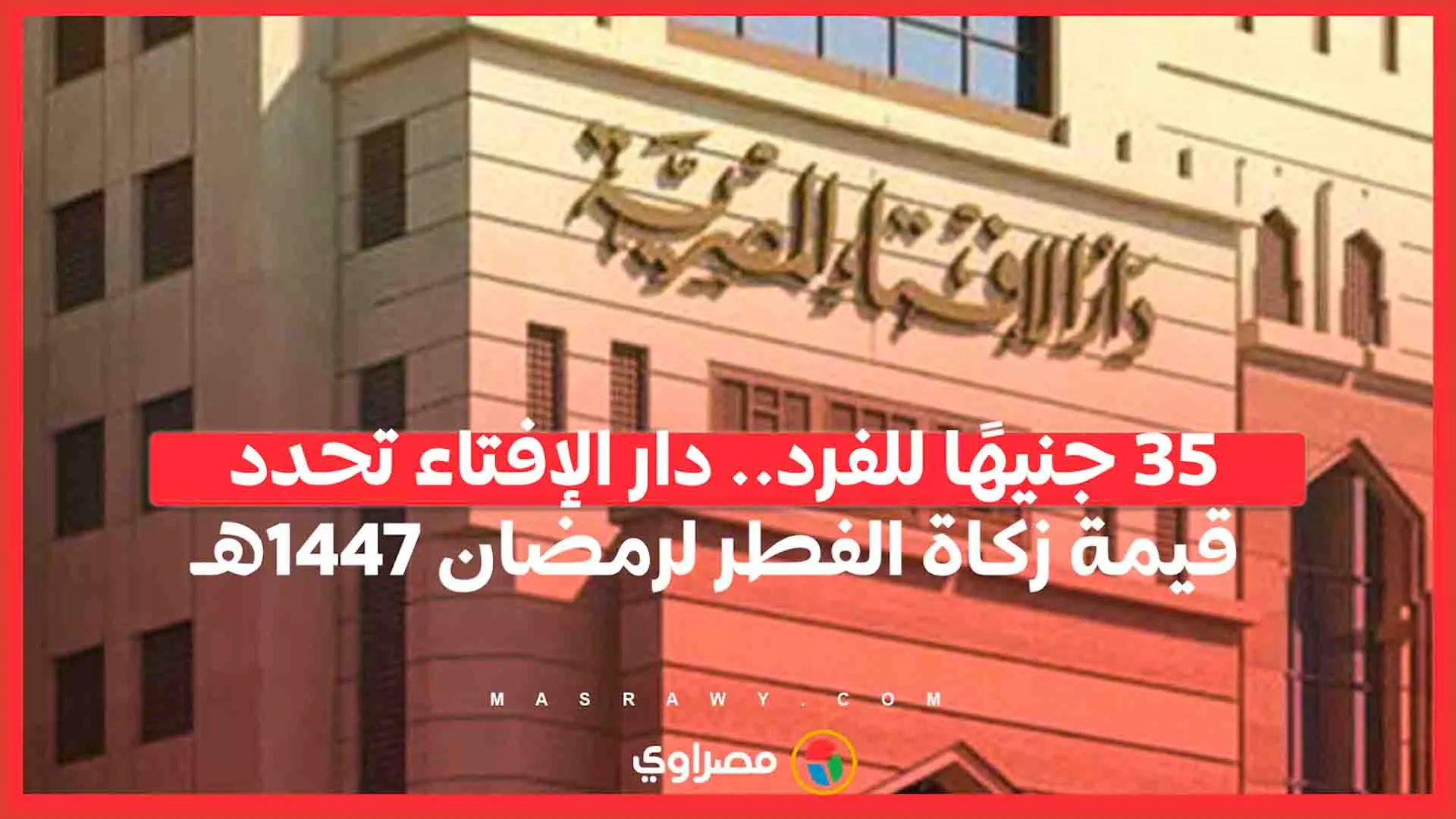 الرئيسية رمضانك مصراوي فيديوهات رمضان 35 جنيهًا للفرد.. دار الإفتاء تحدد قيمة زكاة الفطر لرمضان 1447هـ كتب : مصراوي 09:00 م 20/02/2026 تابعنا على لحساب زكاة الفطر وفدية الصيام اضغط هنا لمعرفة مواقيت الصلاة وموعد الأذان اليوم اضغط هنا زكاة الفطر لرمضان