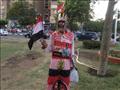 أمام مدخل الدرجة الثالثة إلى ستاد القاهرة الدولي، وقف "وحيد عبدالواجد" بزي مميز يغلب الأبيض والأحمر والأسود لونه، وعلى رأسه تاج فرعوني من الورق المقوى، يد تحمل علم مصر، وفي الأخرى كيس بداخله طعام، حصل عليه من أحد المارين.