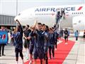 وظهر علم فرنسا يرفرف من نافذة كابينة القيادة بالطائرة وهبط اللاعبون على البساط الأحمر الذي كان في انتظار الأبطال.