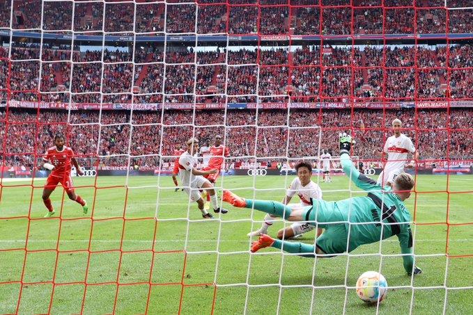 وأضاف النجم الألماني الشاب جمال موسيالا الهدف الثاني للنادي البافاري في الدقيقة 60 لكن شتوتجارت حصل على ضربة جزاء في الوقت بدل الضائع للمباراة سجل منها الغيني سيرهو جيراسي هدف التعادل القاتل للفريق الضيف.