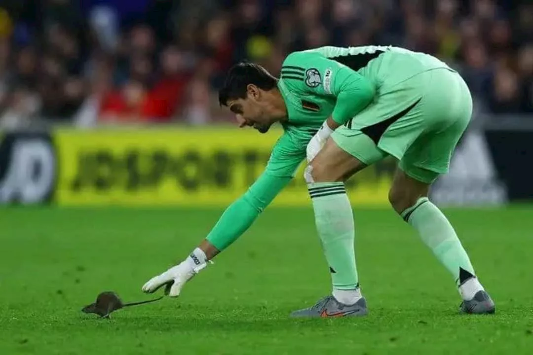 حارس بلجيكا يترك مرماه ويطارد "فأرًا" بتصفيات كأس العالم.. ما القصة ؟ (صور وفيديو)