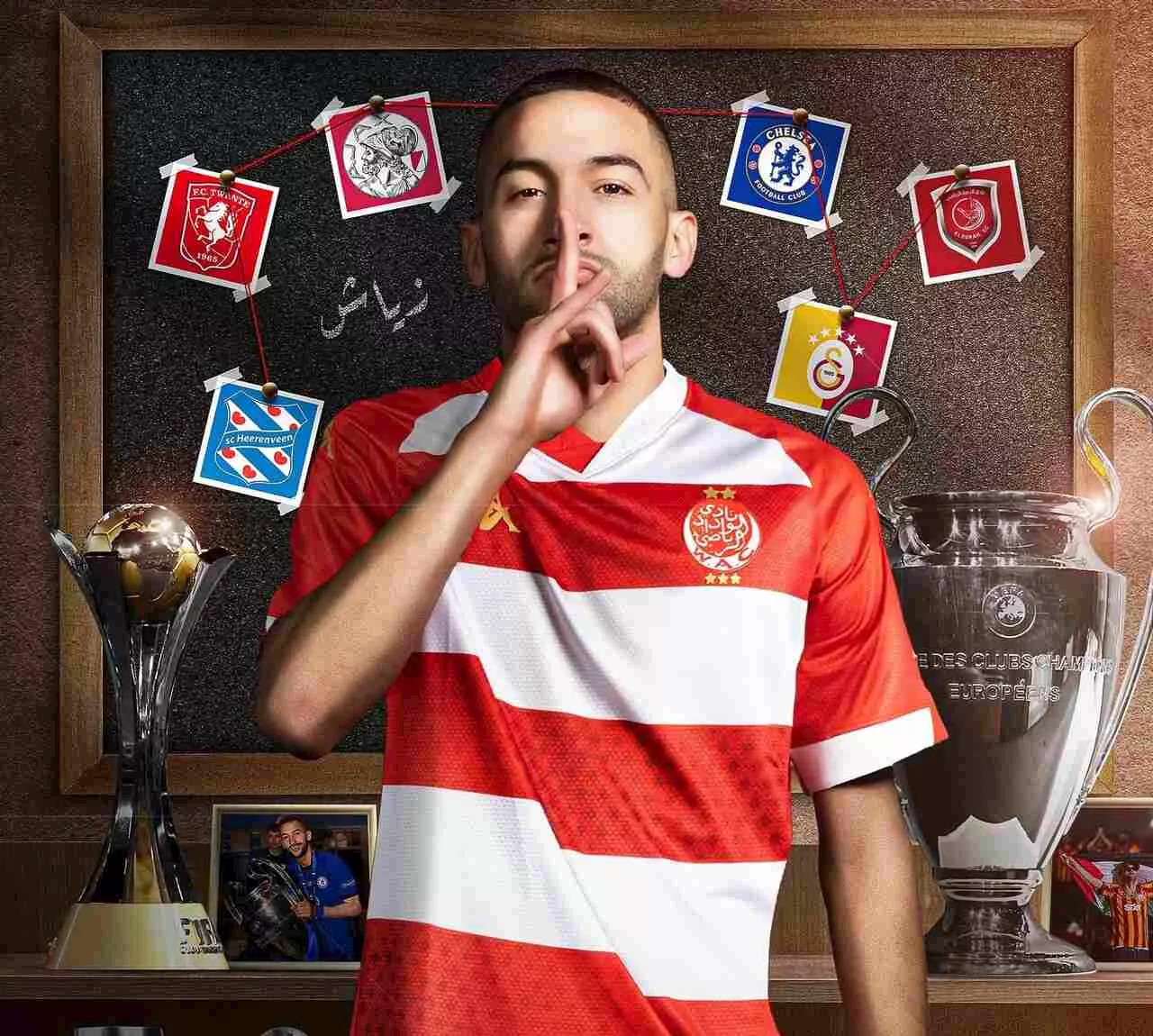 ونشر الحساب الرسمي للوداد المغربي في الساعات الأولي من صباح اليوم الجمعة، صورة حكيم زياش بقميص الوداد معلقًا عليها: "طــال الانتظـار .. حكيم زياش في الوداد"