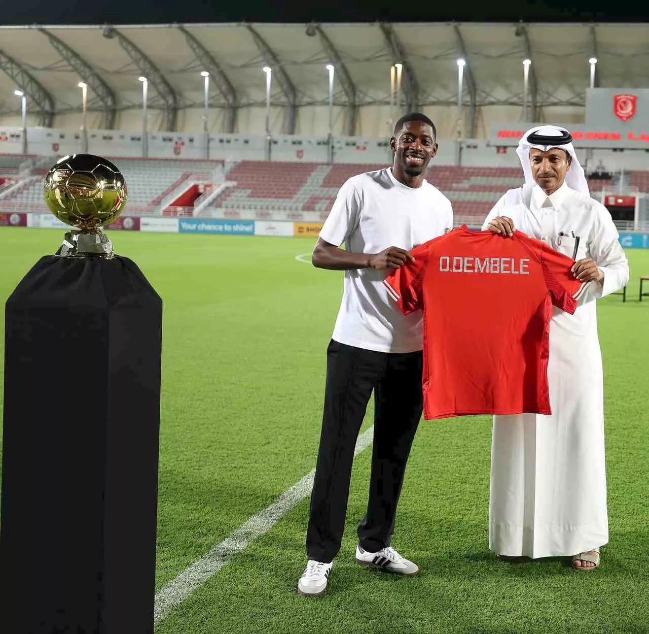 استقبل نادي الدحيل القطري، النجم الفرنسي عثمان ديمبلي، هدّاف باريس سان جيرمان والمتوج مؤخراً بجائزة الكرة الذهبية لأفضل لاعب في العالم، وذلك خلال زيارته إلى مقر النادي في الدوحة.