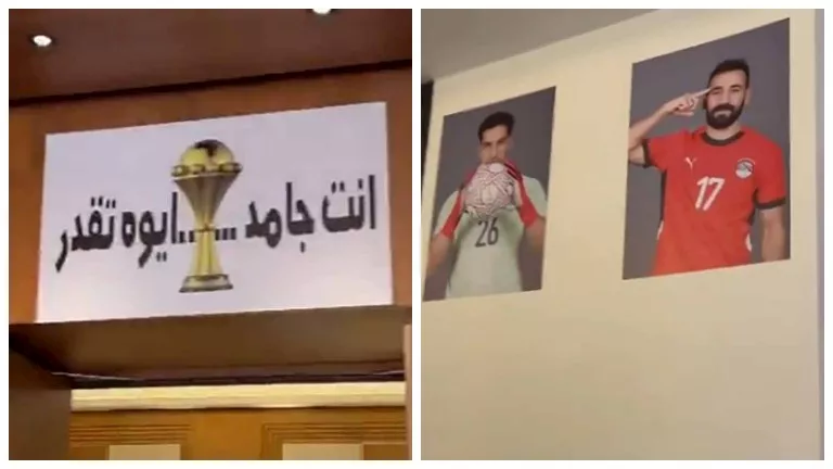 وتداول رواد مواقع التواصل الاجتماعي مجموعة من الصور للاعبي المنتخب، داخل قاعة الاجتماعات الخاصة بالمنتخب في فندق الإقامة، مع لافتة كتب عليها: "انت جامد، أيوة تقدر"، لتحفيز اللاعبين خلال بطولة أمم أفريقيا.