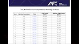 وتصدر أستراليا القائمة بـ97.662 نقطة، بعدما فاز فريق ملبورن سيتي الأسترالي بنهائي دوري أبطال آسيا، وجاء في المركز الثاني جمهورية كوريا ويليها اليابان.
