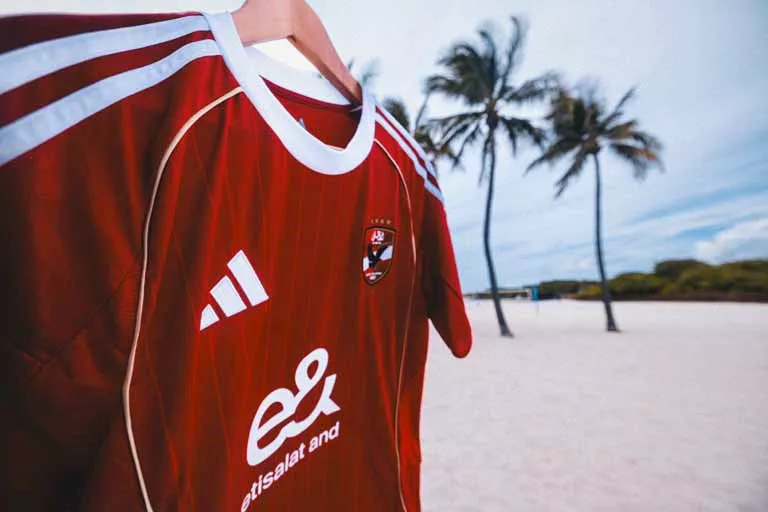 ونشر الحساب الرسمي للنادي الأهلي على موقع التواصل الاجتماعي "فيس بوك"، عددًا من الصور لقميص الفريق الجديد الذي سيخوض به مونديال الأندية، في شوارع مدينة ميامي الأمريكية، هو يتزين بشعار كأس العالم 2025.