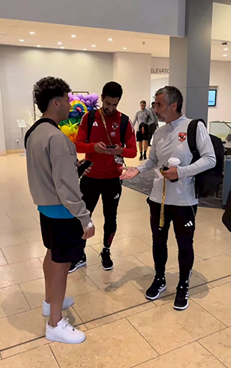 وظهر بفندق الإقامة مع اللاعبين قبل ذهابهم لخوض الحصة التدريبية اللاعب إمام عاشور الذي تعرض لإصابة قوية في الكتف خضع على إثرها لعملية بمباراة إنتر ميامي الأمريكي.