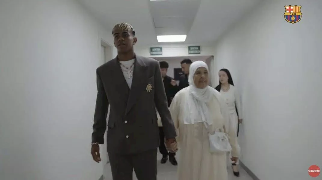 كما كان يفعل فى طفولته، حرص النجم الإسباني لامين يامال صاحب الأصول المغربية، على اصطحاب جدته "فاطمة" معه خلال تجديد عقده مع برشلونة.