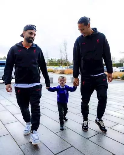 محمد صلاح وفيرجيل فان دايك مع أحد الأطفال